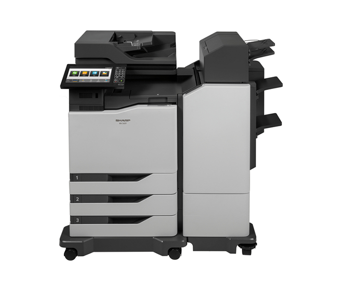 • MFP A4, colour, copier, printer, scanner, fax, PCL, PS3, network, memory 2 GB, HDD 500 GB, 3 cassetes x 550 sheets + bypass for 100 sheets, DSPF, OCR