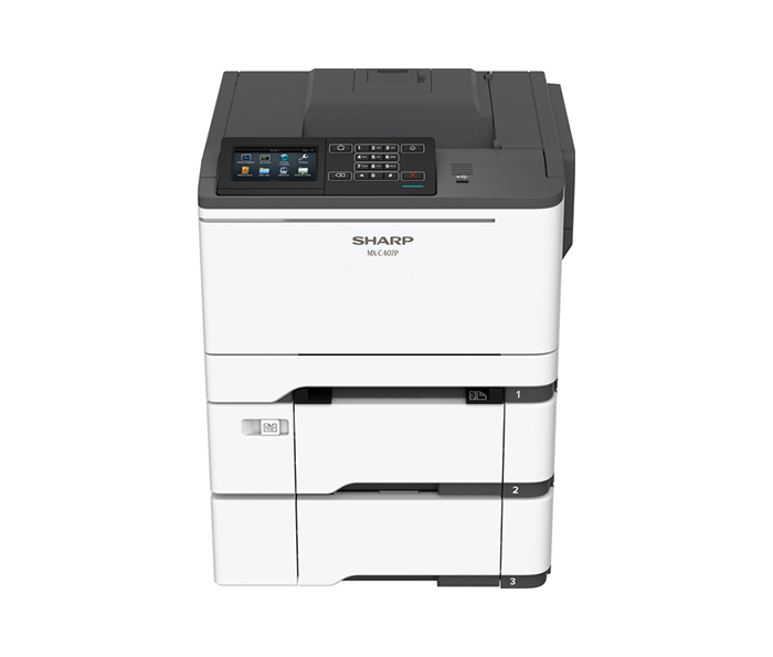 • Printer A4, colour, 38 ppm, PCL, PS3, network, memory 1 GB, cassette for 250 sheets + bypass for 1 sheet, touch panel 4,3"